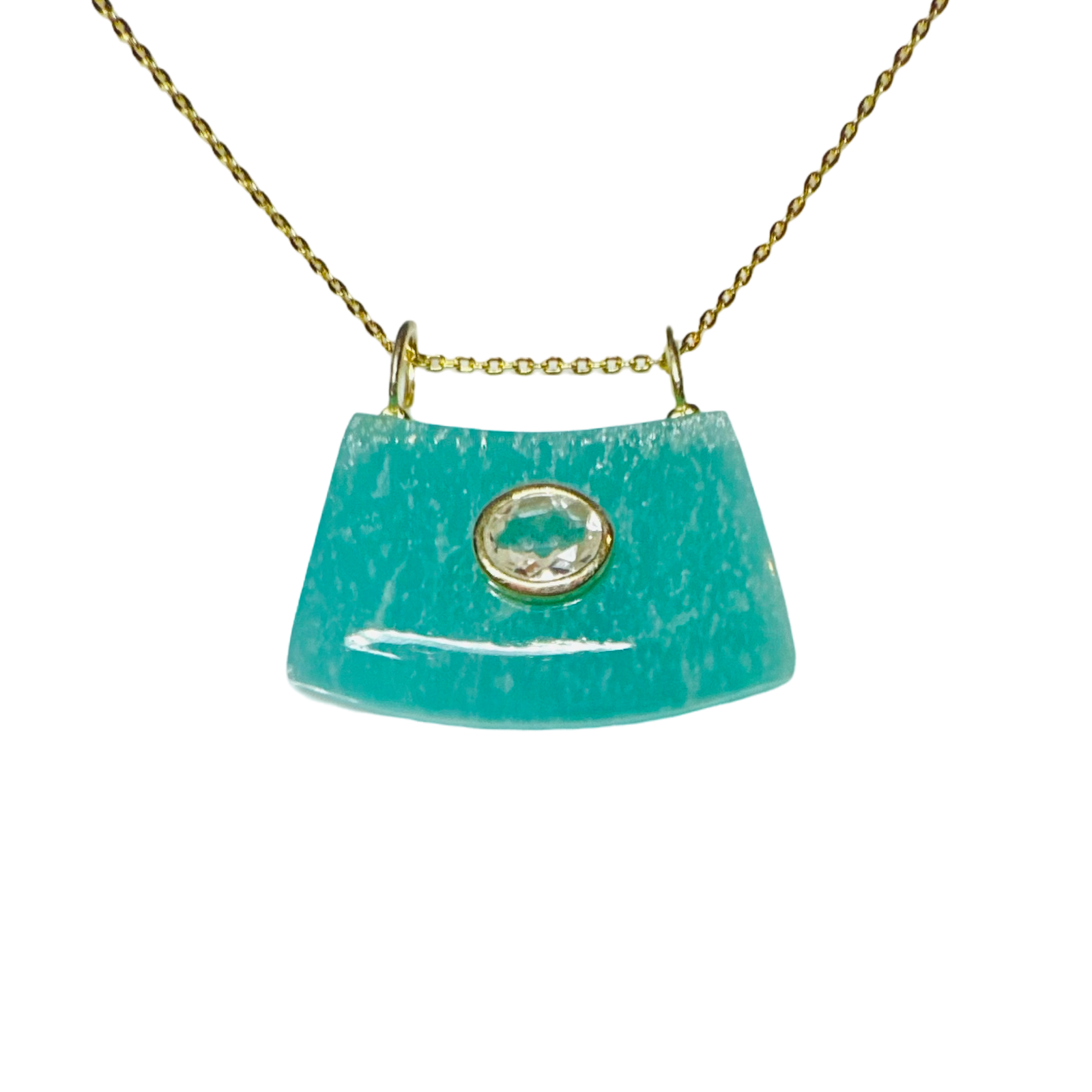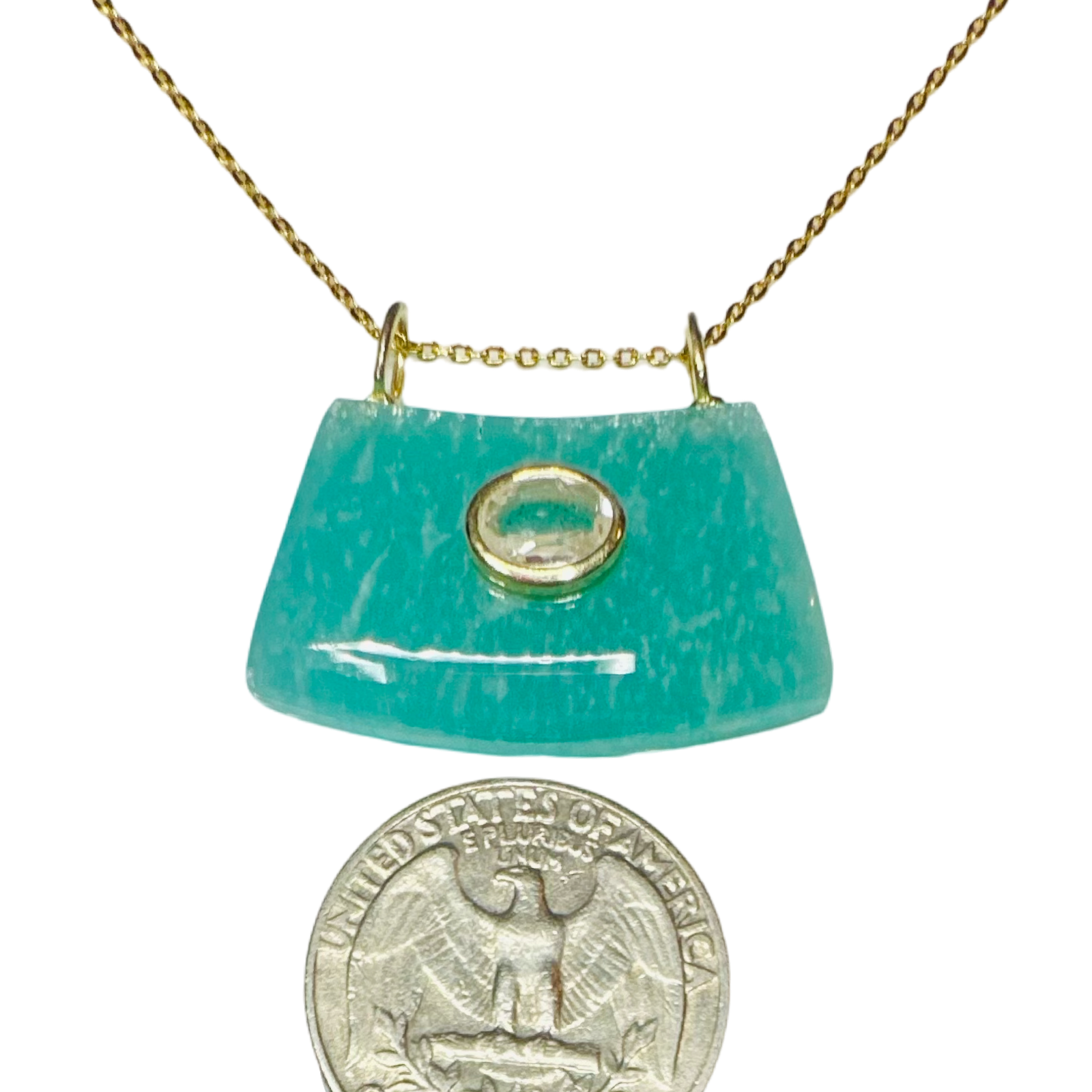 925 Sterling silver with 18k gold, Amazonite and topaz, 16" long + 2" extension.