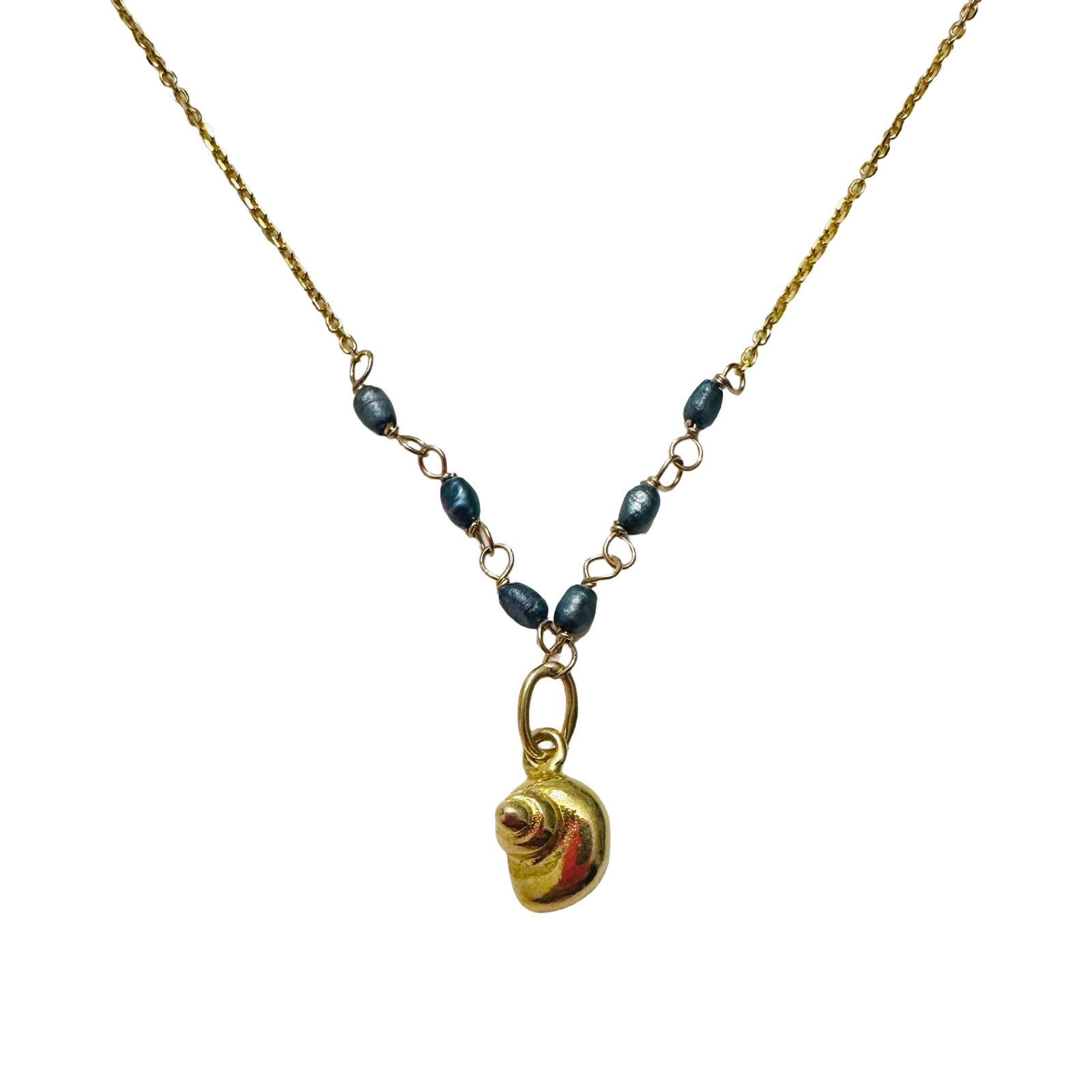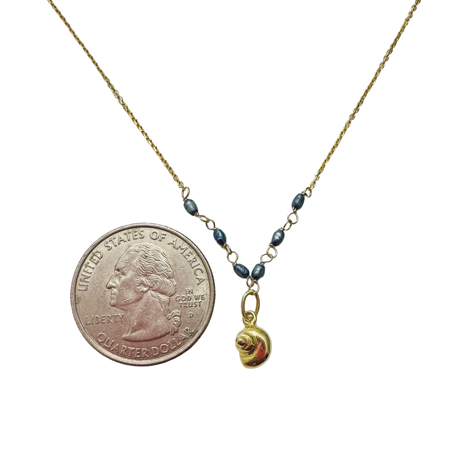 925 Sterling silver with 18k gold and died fresh water pearls, 16” long.