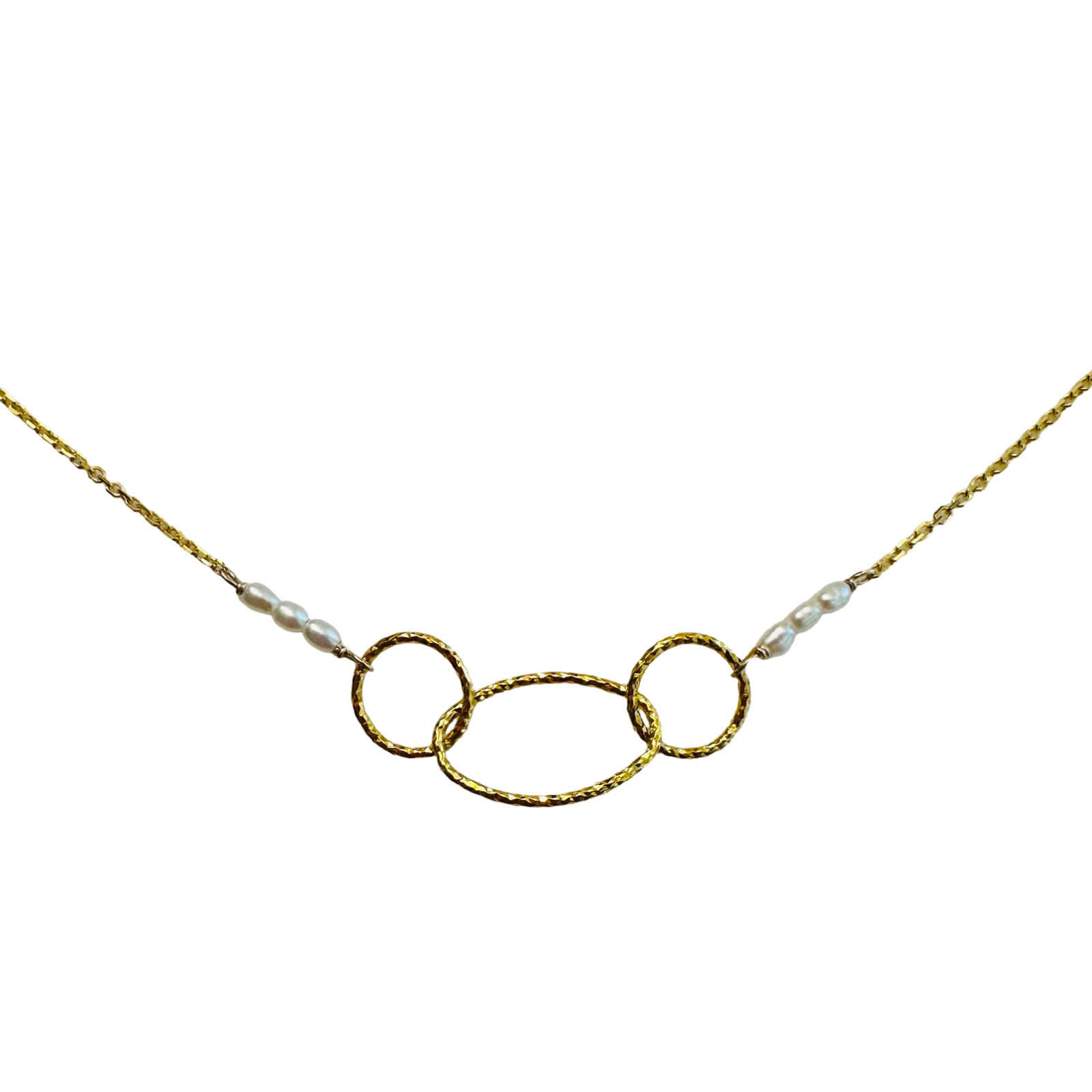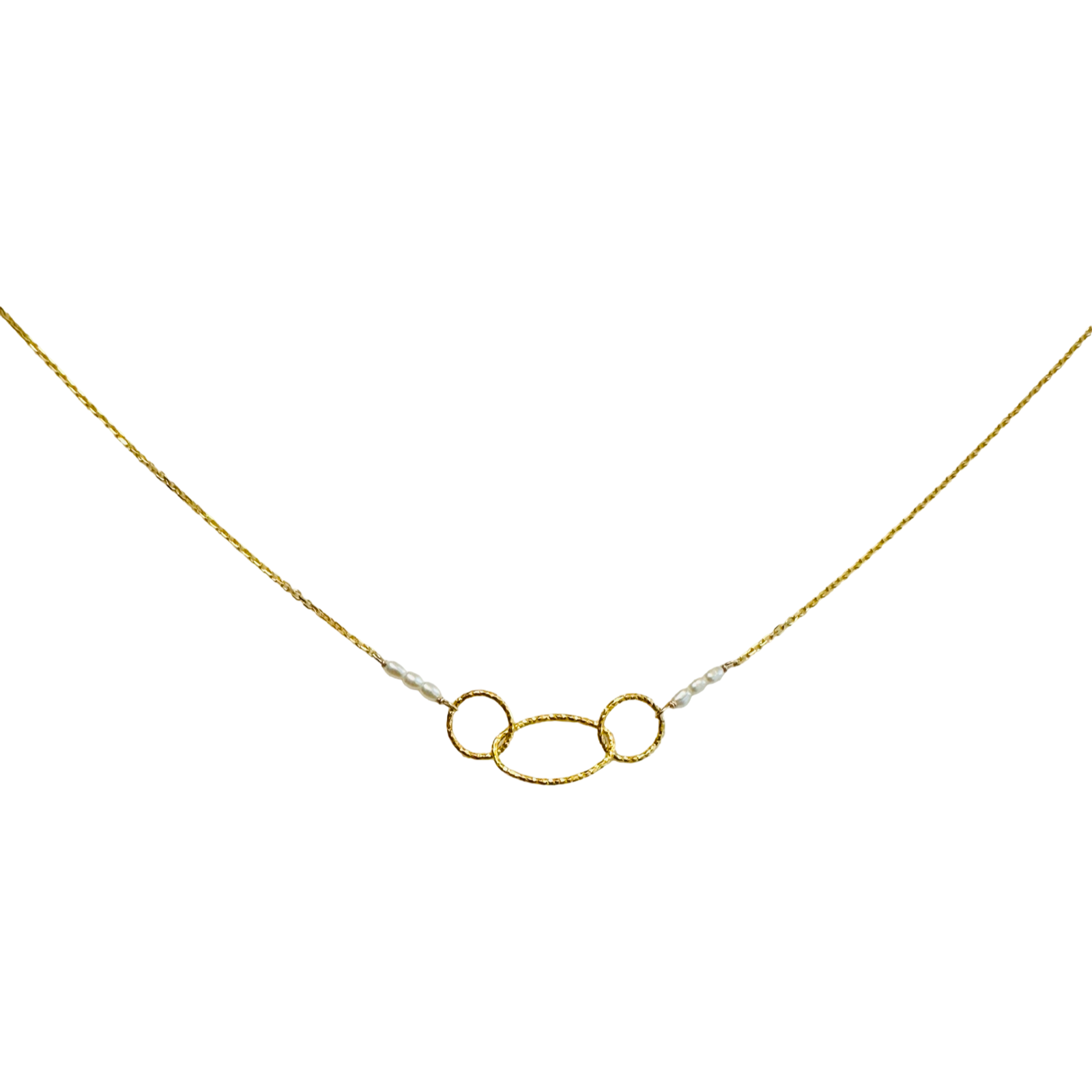 925 Sterling silver with 18k gold, e coating and fresh water pearls , 16” long.