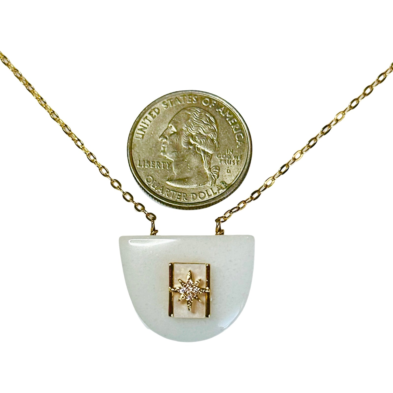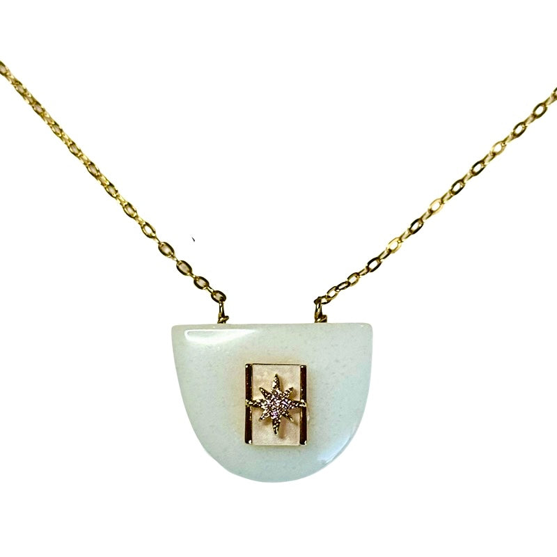 18k Goldfilled and white stone, mother of pearl and cubic zirconias, 18” long
