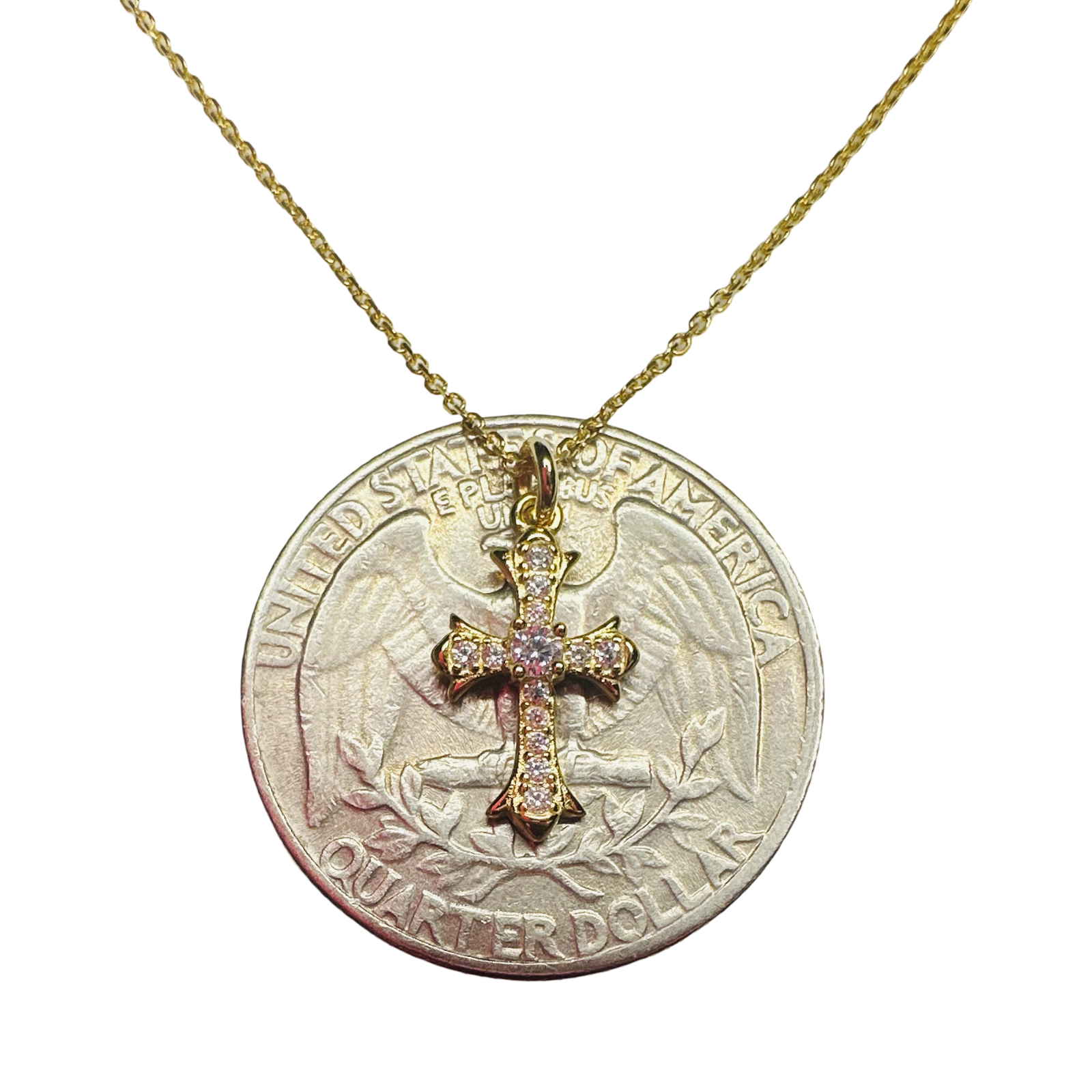 925 Sterling silver 18k gold with cubic zirconias, 16” long.