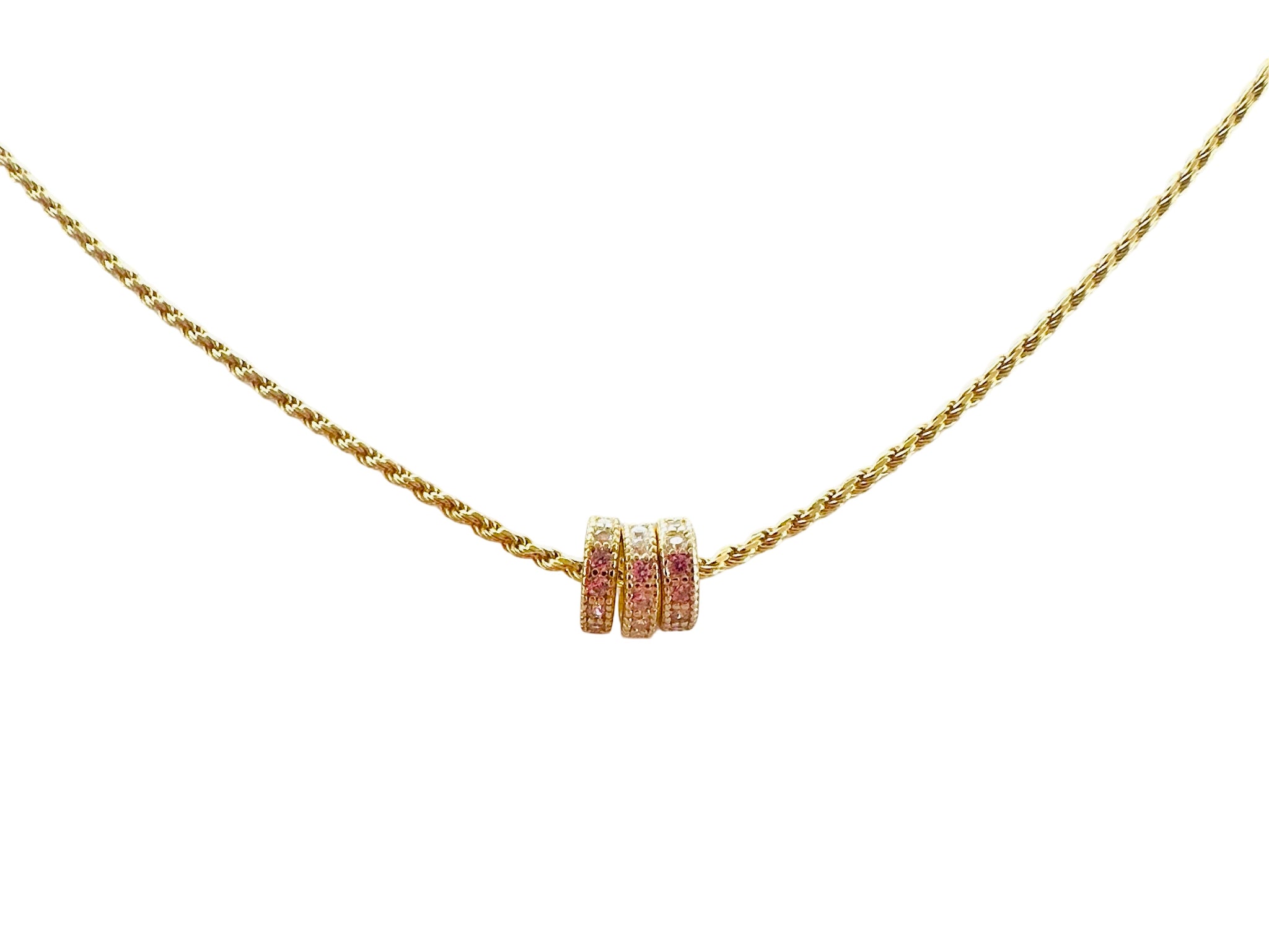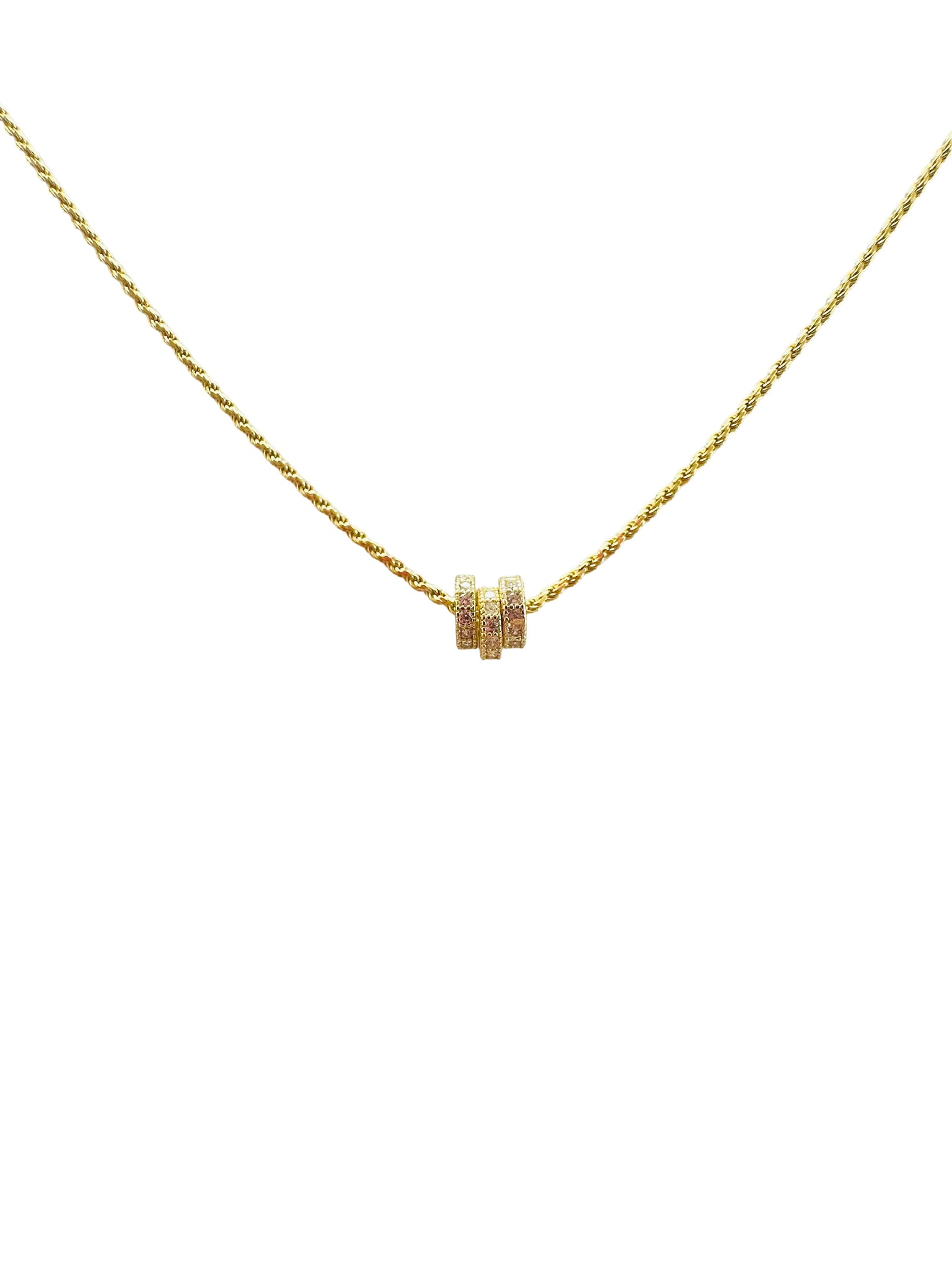 925 Sterling silver with 18k gold, cubic zirconias and e-coat. 16” long