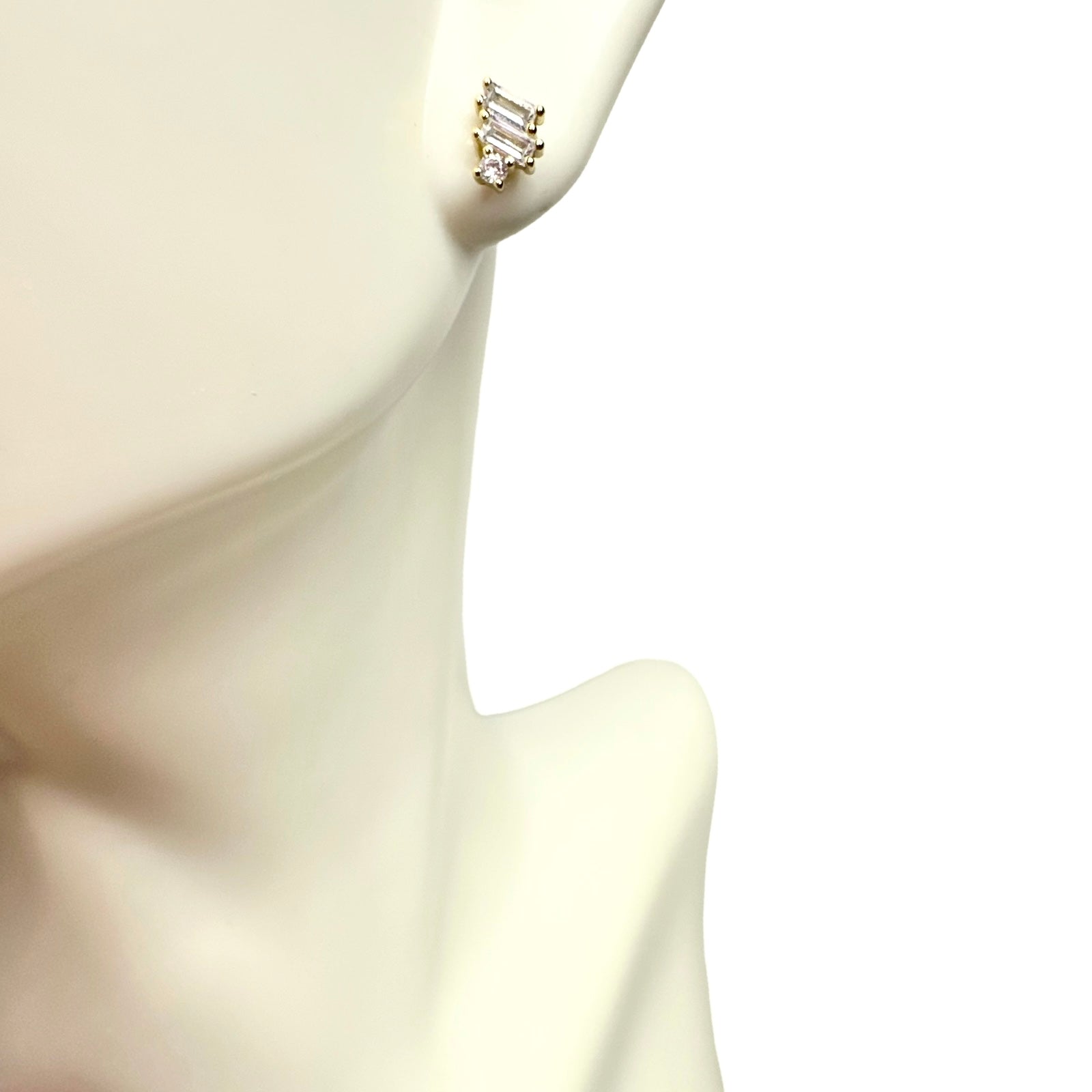 925 Sterling Silver gold plated stud earrings with baguette cubic zirconia.