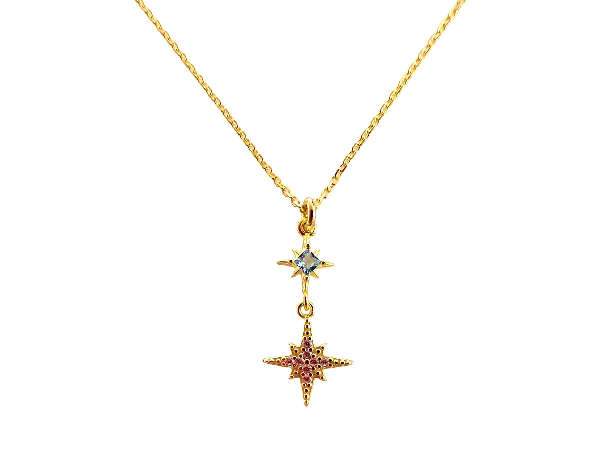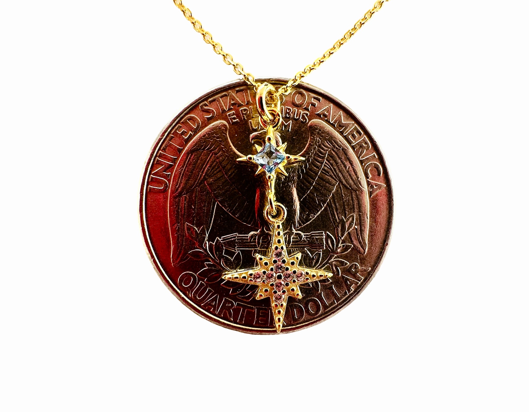 925 Sterling silver with 18k gold, semi cubic zirconias and e-coat. 16” long