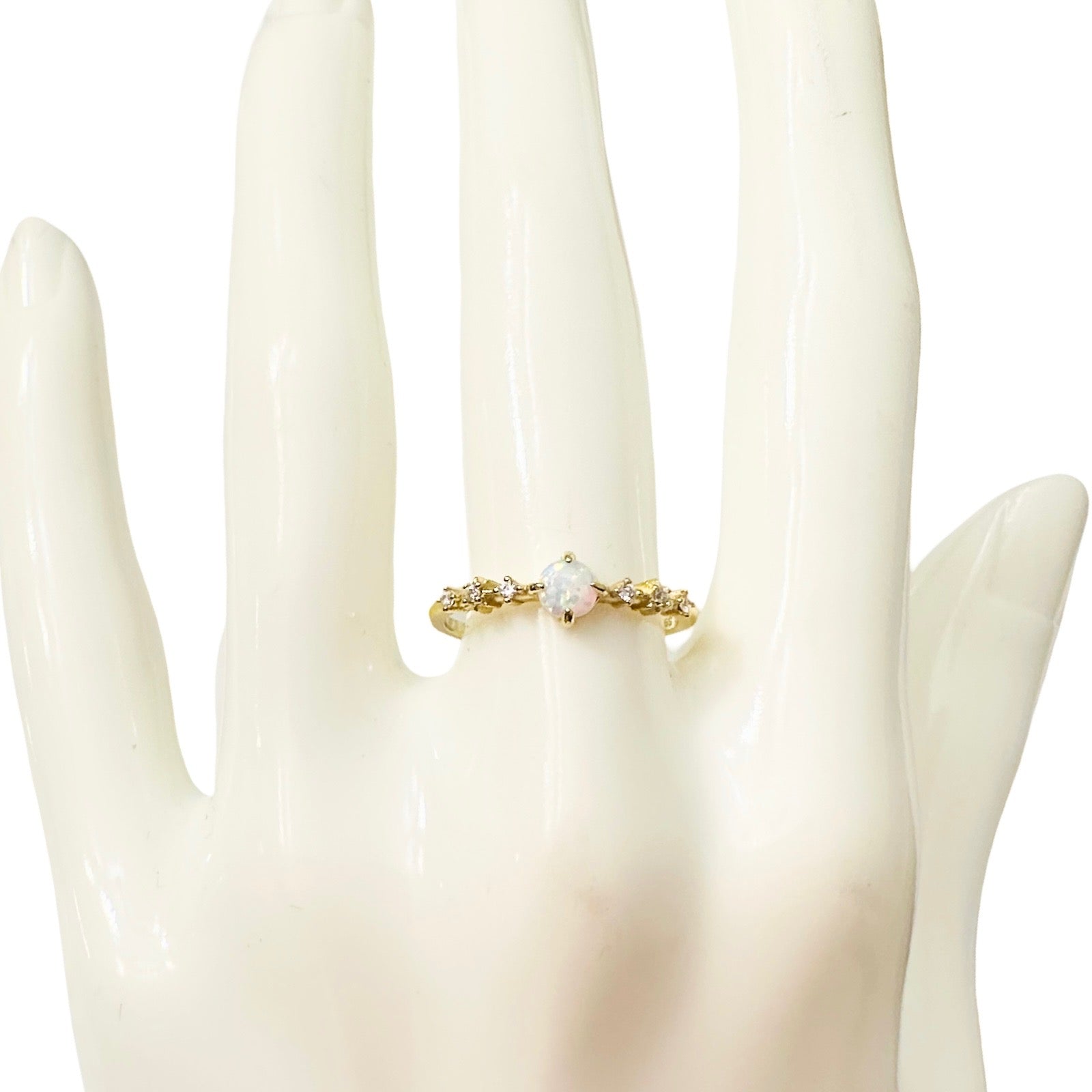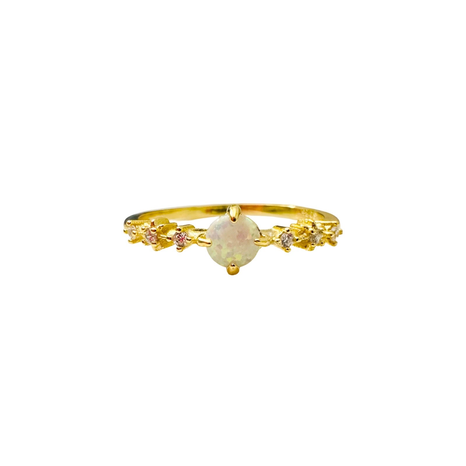 925 Sterling silver 18k gold plated with cubic zirconias and white opal, Size7 available.