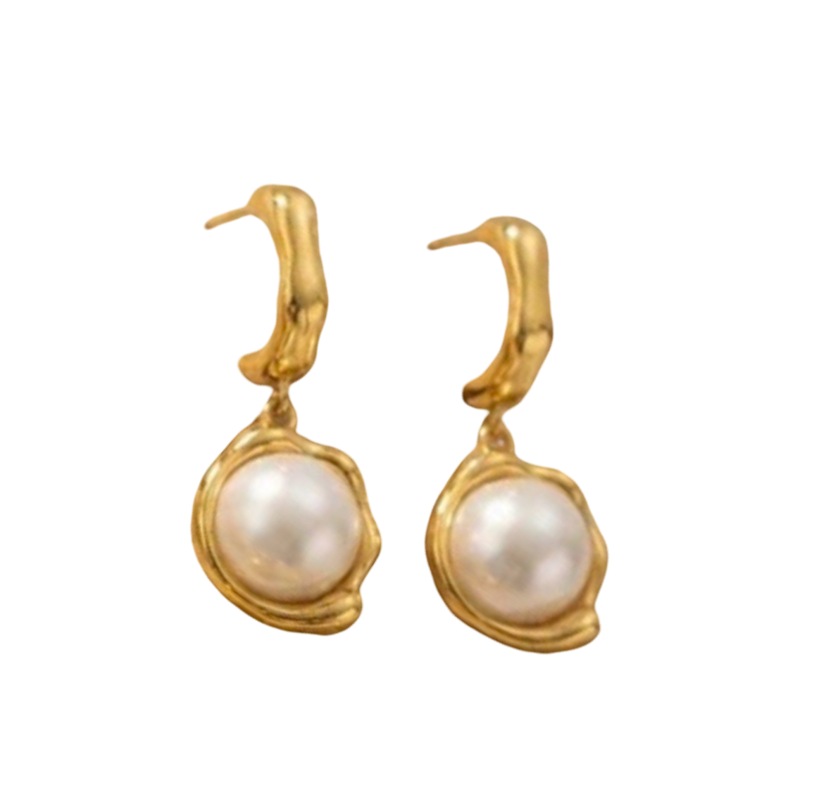 Imitation pearl and stainless steel hoop, water resistant and hypoallergenic.