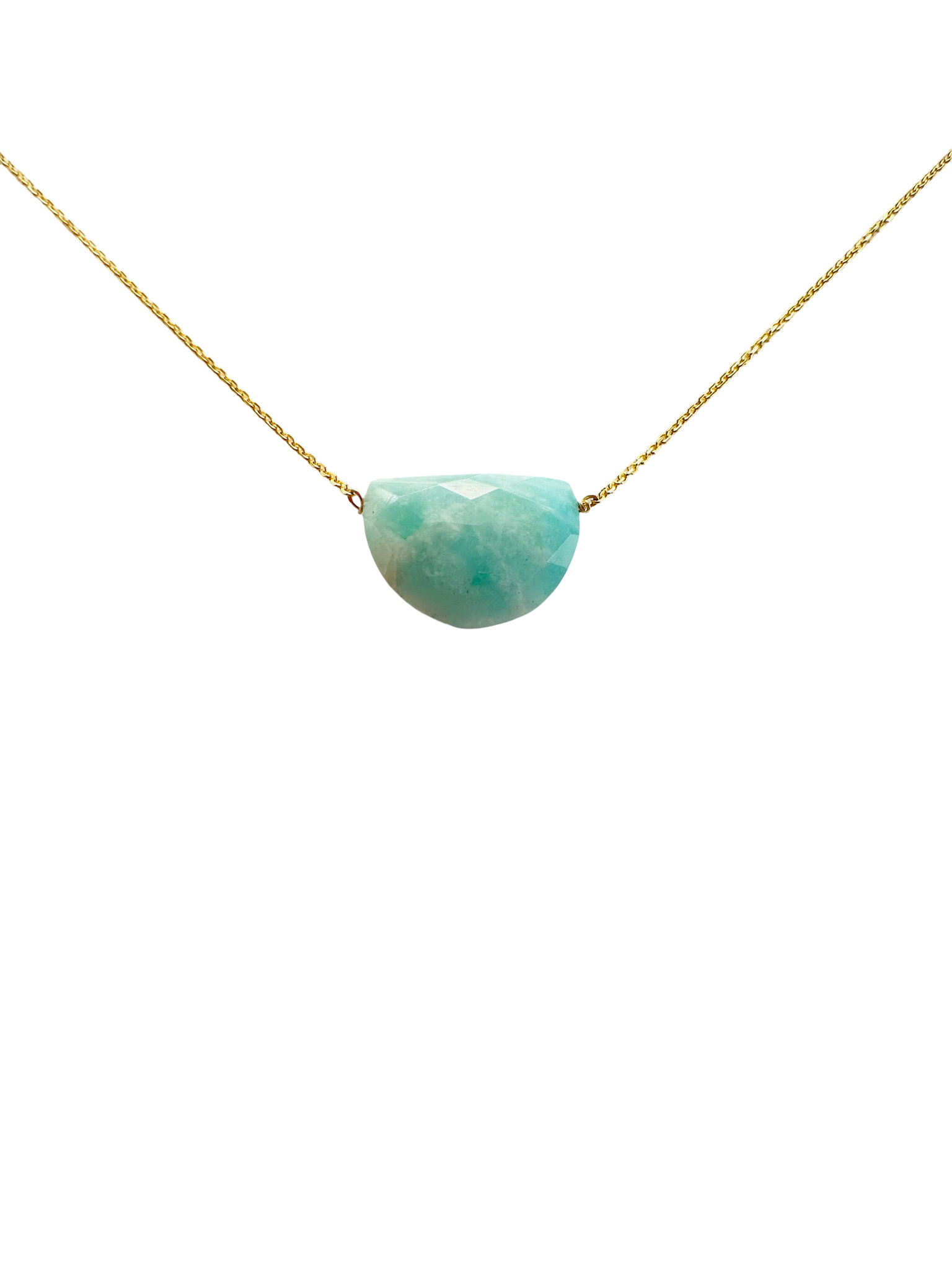 925 Sterling silver with 18k gold, Amazonite stone and e-coat. 16” long