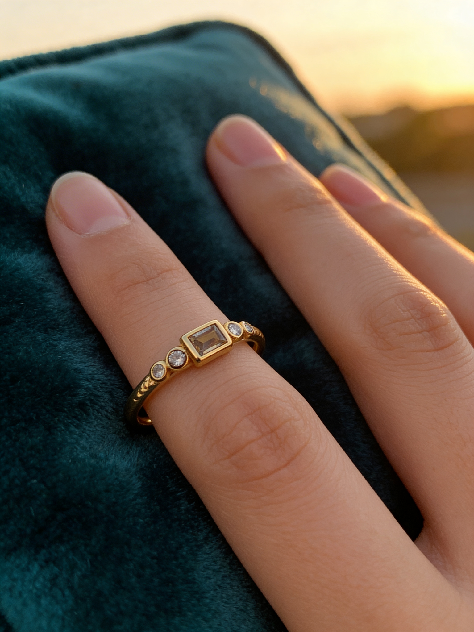 18k ver mail over 925 sterling silver ring with zirconias, available in size 6&7.