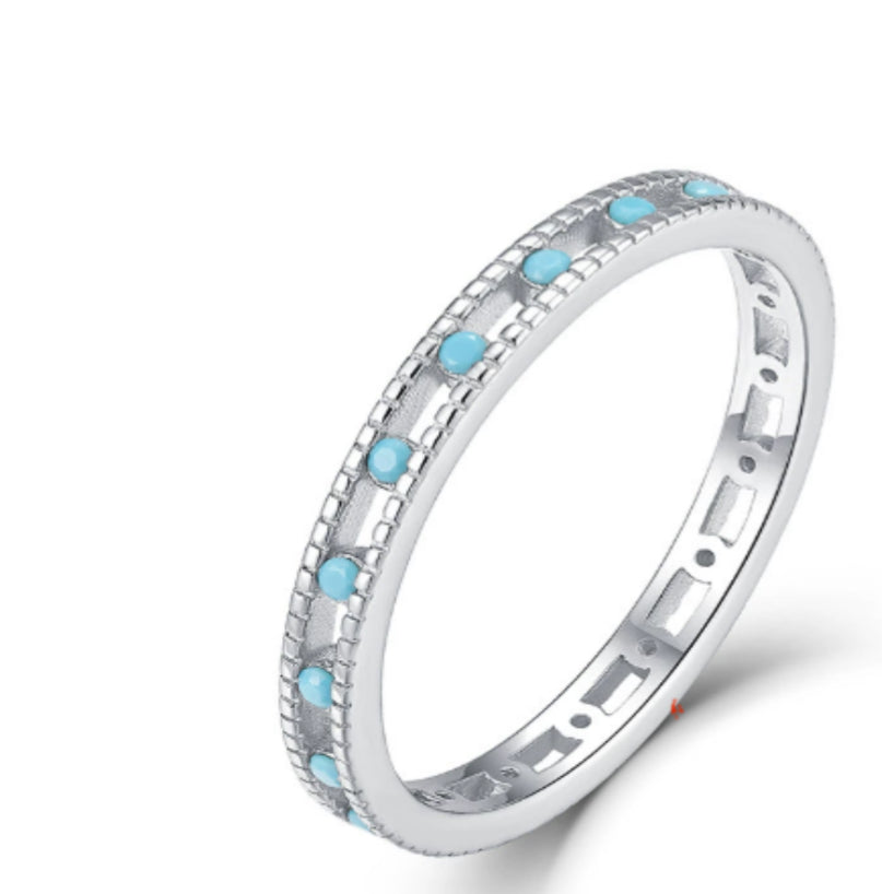 925 Sterling silver with 18k gold and turquoise zirconias, size 7